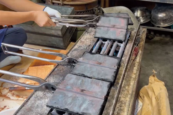 素材を混ぜ合わせる工程から焼き上がりの瞬間まで、職人は火加減や生地の状態を見極めながら、細かな調整を繰り返します。